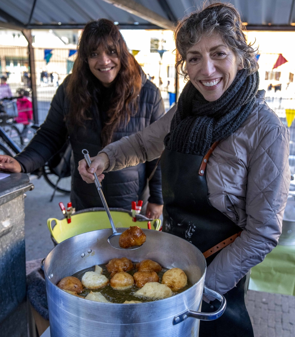 Het balletje rolde 10 januari jl. heel verrassend met...honderden oliebollen. Op het speelplein van Kindcentrum Fontein bakte directeur Yolanda Libregts namelijk voor alle kinderen en het team oliebollen.